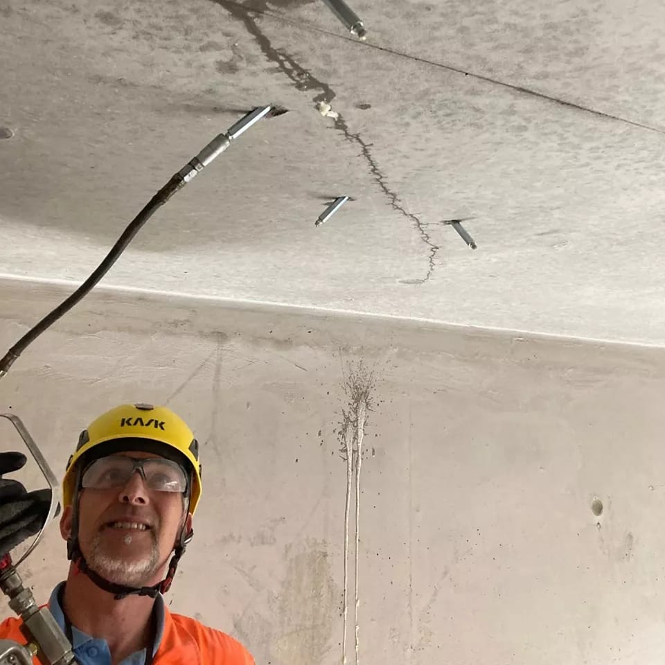 Epoxy injection grouting is a technique used to repair cracks in concrete structures by injecting high-strength epoxy resin into the damaged area.